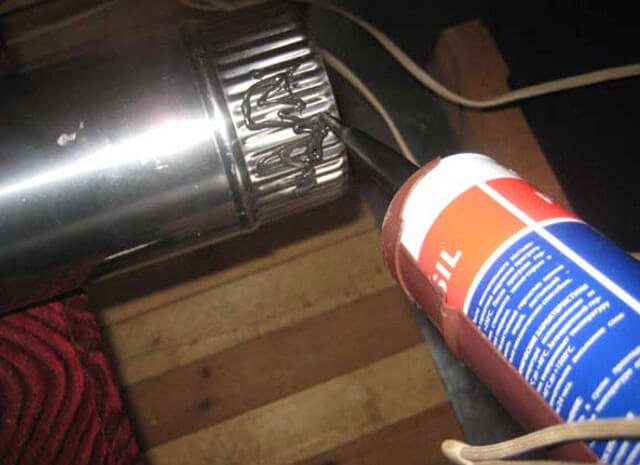 - Инсталационната работа започва от фланеца. Изолацията на фолио не се нуждае от защитно покритие. В други случаи се прави кожух или метален кожух за изолация.