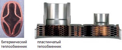 В много европейски газови котли е инсталиран битермален топлообменник. Съдейки по уверенията на производителите, това намалява производствените разходи и практически не влияе на топлопредаването и ефективността на отоплителното оборудване.