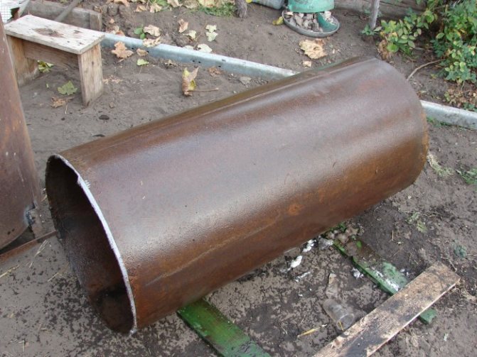За производството ще ви е необходима тръба от дебели стени (най-малко 4 мм) с диаметър 40 см. Можете да използвате метален лист с еднаква дебелина, от който трябва да заварявате цилиндър със същия диаметър: