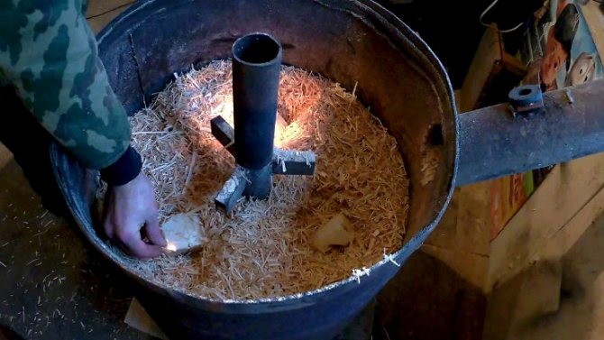 Принципът на работа на пещите върху дървени стърготини