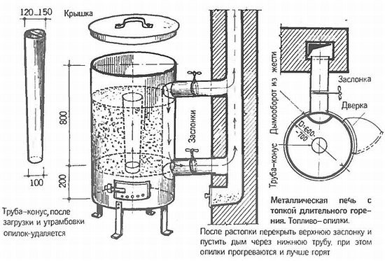 Такъв дизайн ще даде дълго изгаряне и това ще реши проблема с осигуряването на жилище с топлина. Нещо повече, при независимото производство на такава пещ се използват доста евтини материали.