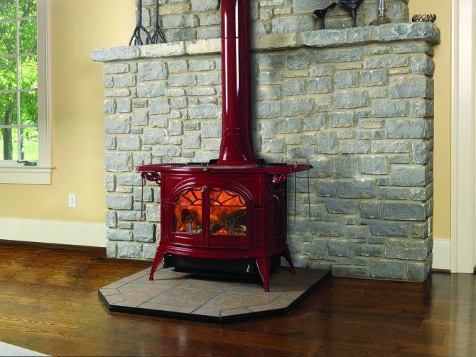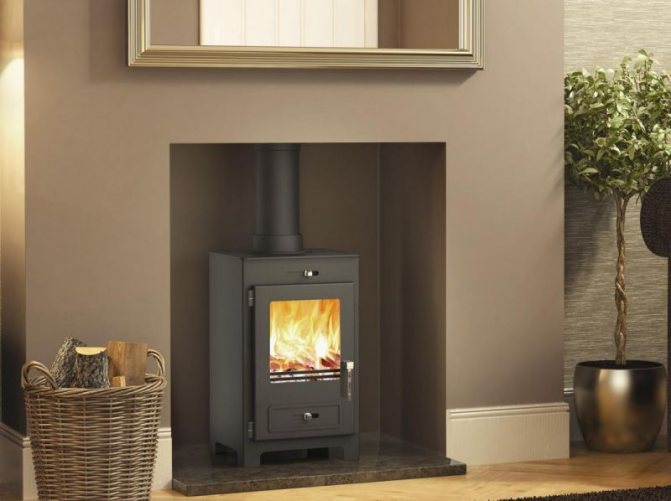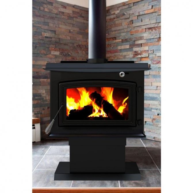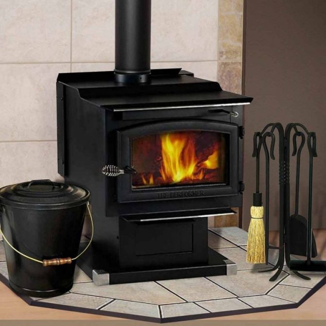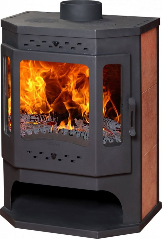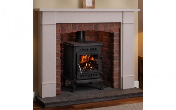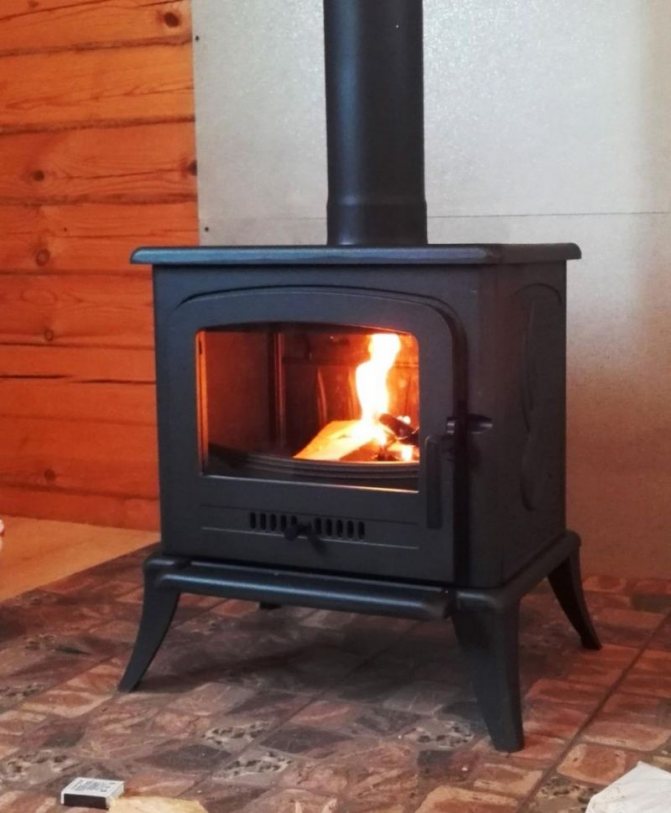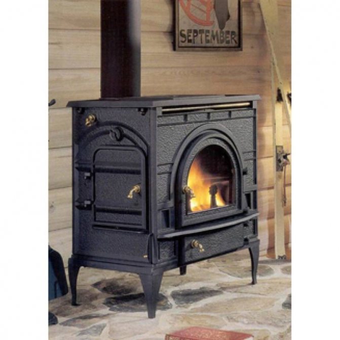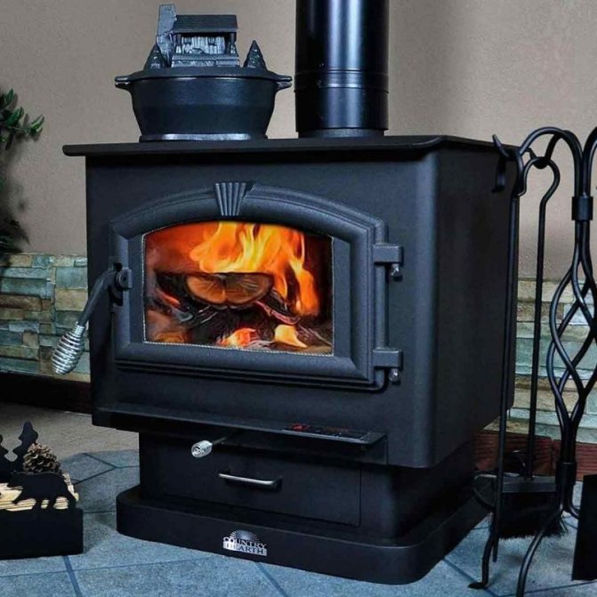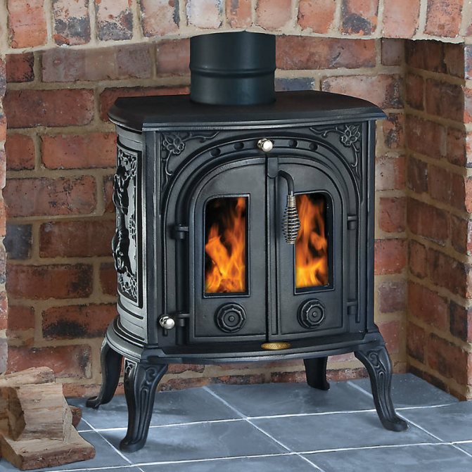 - Дълго изгаряща чугунена печка за камина.
