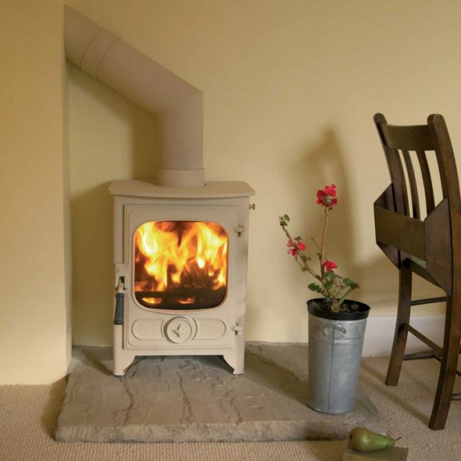 Печката е свързана с комина с помощта на специален изход за тръба.