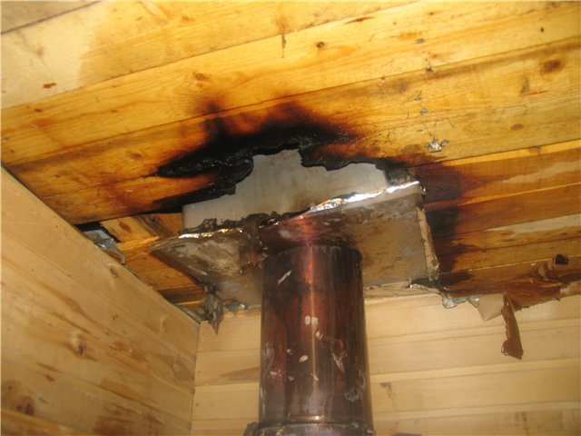 - в тавана. Доста скъп дизайн, тъй като е необходимо да преминете тавана, за да не влезете в системата на гредите. След това изтеглете тръбата, прорязвайки покрива, така че впоследствие да не тече вода през тръбата. В случай на двуетажна сграда, между етажите ще бъде добавена дупка. Извършвайки всички тези работи, е необходимо да се вземе предвид пожарната безопасност;