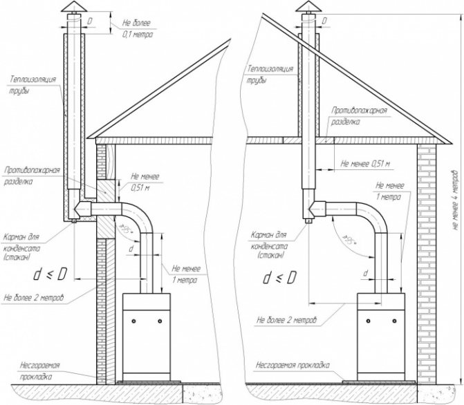 Изходът на тръбата трябва да бъде разположен над покрива съгласно определени правила: