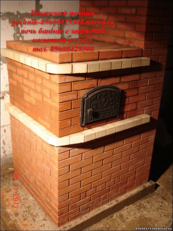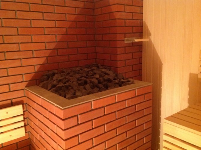 - Тухла. Класически печки за руска баня. Те изглеждат привлекателни, поддържат топлина за дълго време. Тъй като тухлите са тежки, за фурната трябва да се издигне отделна основа.