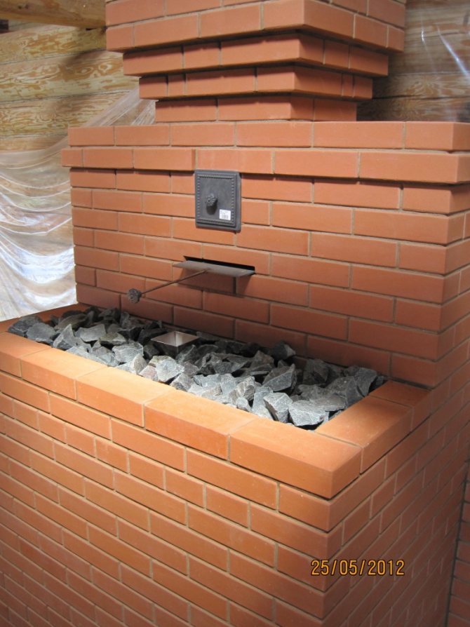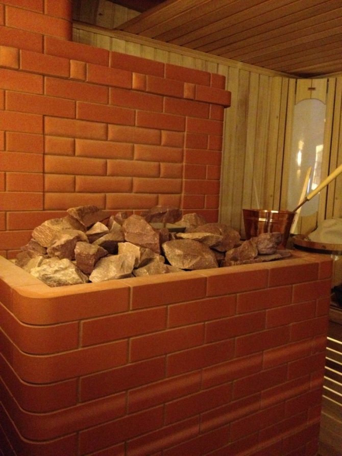 - Правилно поставяне на камъни в нагревателя - от големи до малки, отдолу нагоре.