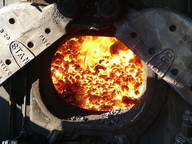 Процесът на изгаряне на въглища се случва с отделянето на голямо количество топлина, температурата в пещта е значително по-висока, отколкото при изгаряне на дърва. В същото време димът, излизащ от горивната камера, е по-малко горещ, отколкото при горене с дърва.