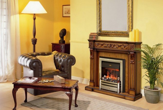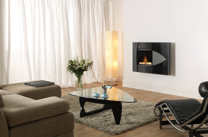 Електрическа камина използва електричество като източник на енергия. Той осигурява визуална имитация на процеса на горене и горещи въглища. Можете да инсталирате такова устройство навсякъде в стаята. Нивата на отопление на електрическата камина могат да се регулират. Единственият недостатък на такъв нагревател е значителното потребление на електрическа енергия, което спира повечето собственици на къщи и апартаменти да ги купуват.