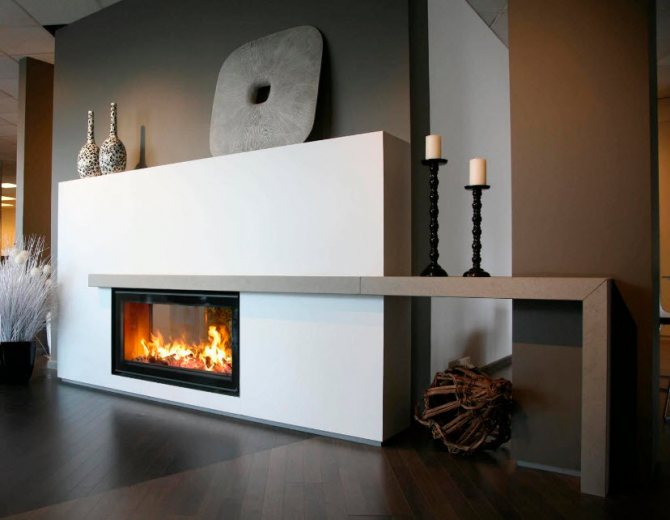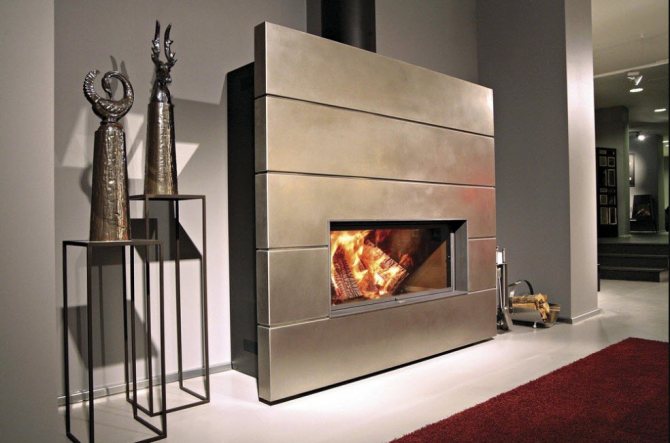 - модерни - плавните линии преобладават в дизайна на такива камини, съчетани с гъвкави форми на довършителни елементи. В интериора такава камина се използва като основа, като се фокусира върху себе си.