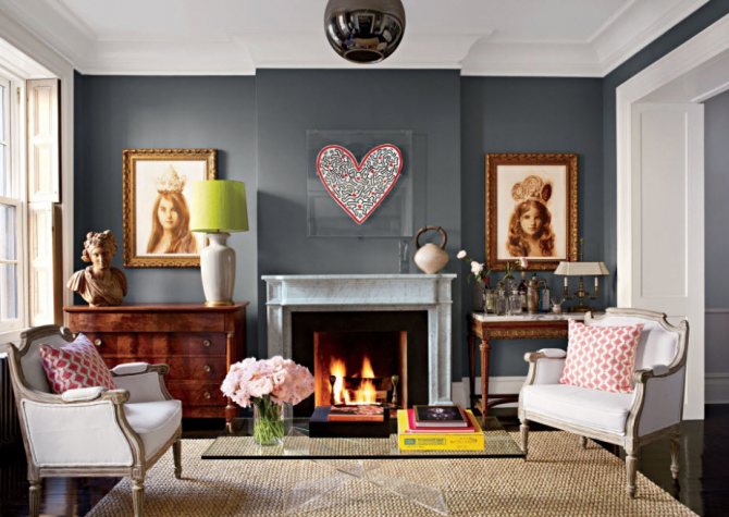 Според старата традиция столове на огънати крака се поставят близо до камината, а масата до нея е украсена с декор, който е в съответствие с камината. Дизайнерите отбелязват, че класическите канони са подходящи в интериорни стилове, които са сходни по дух. Романтизъм, реколта и арт деко по-хубави от лукса на камина портали.