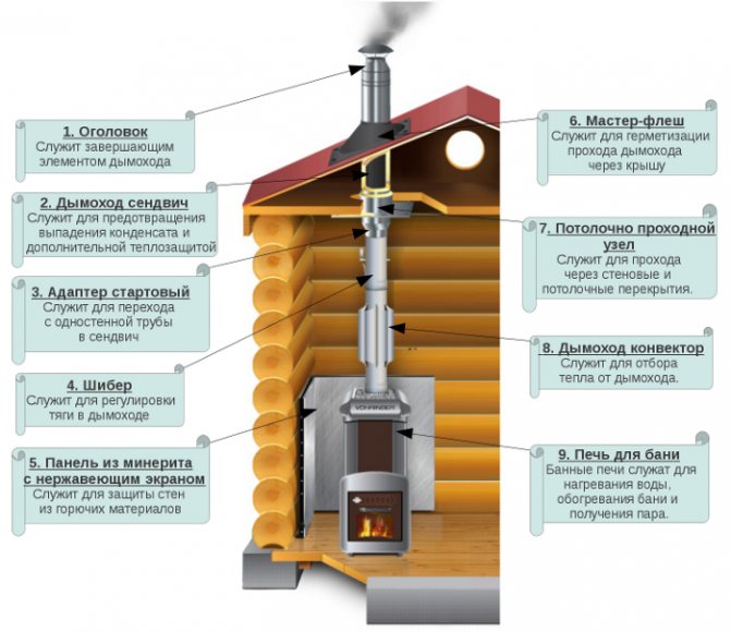 Монтажът ще стане по-ясен, когато знаете от какви елементи се състои коминът. Обикновено са девет от тях: