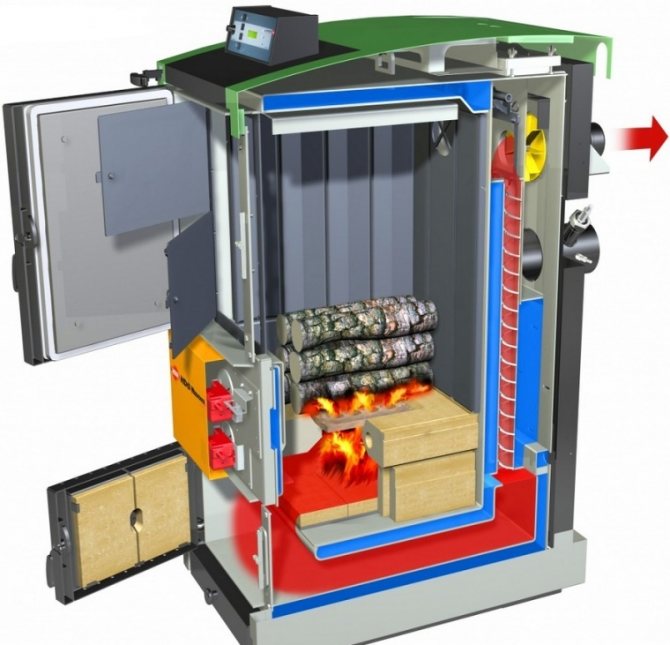 - поради висококачествената тяга димът от горивната камера не прониква в котелното помещение през пукнатините, както и при отваряне на вратата;