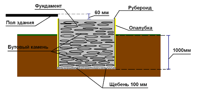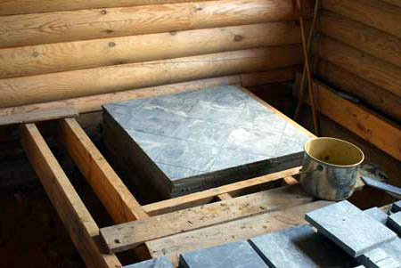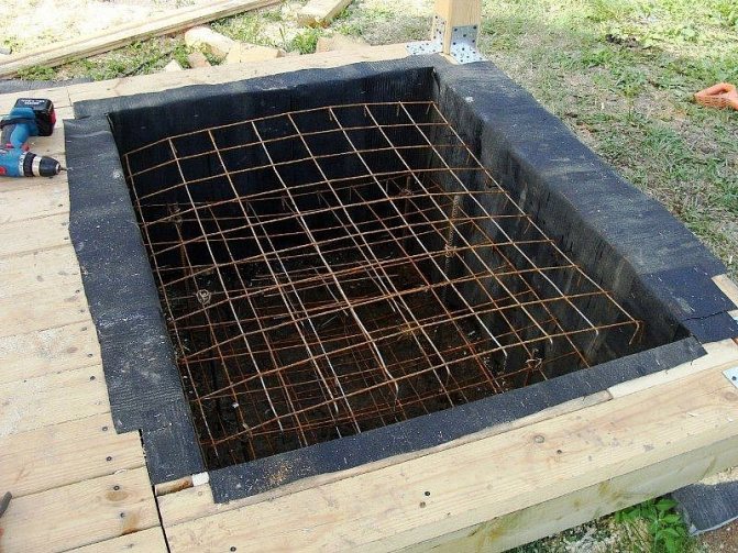 - Изграждане на основата. Като материал за зидария се използват развалини или червена тухла. Височината му не трябва да е по-висока от пода и е задължително да има хидроизолация, за да се предотврати навлизането на влага в основата. При изграждането на фундамент, направен от развалини, горните два реда са изложени с тухли. За изграждането на бетонна основа се приготвя специално решение с добавяне на пясък и чакъл смес, която трябва да бъде четири пъти повече от Портланд цимент. Това решение трябва да бъде подсилено с армираща мрежа. Може да се купи готов или заварен от метални пръти с напречно сечение 8 мм, като се запояват заедно на разстояние 100 или 150 мм.