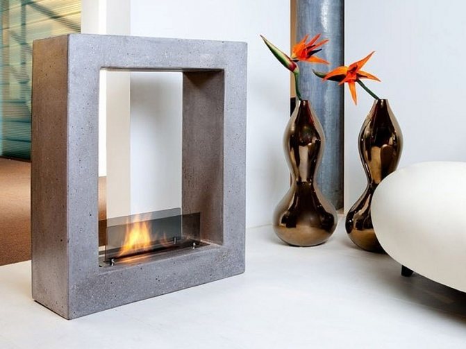 Модерна масичка от биокамин от бетон може да украси апартамент, офис или лятна тераса