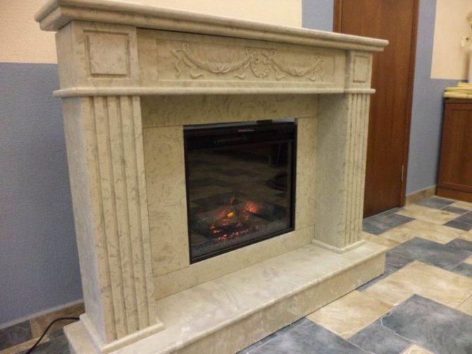 За производството на портал за камина се използва специална трайна бетонова смес, например бетон от фибростъкло - материал, подсилен с фибростъкло. Този материал е способен да издържа на големи натоварвания, но в същото време е лек и икономичен.