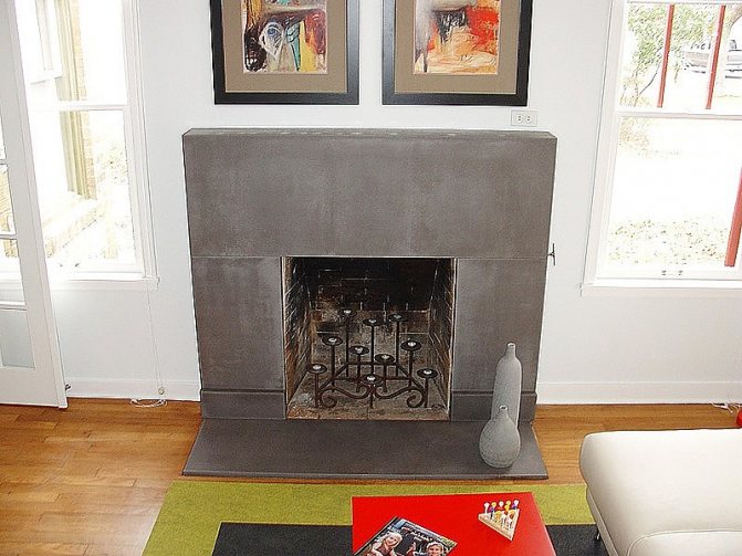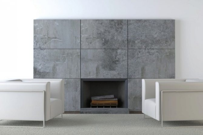 Не само плочки и мазилка, но и MDF панели могат да направят камина "бетон"