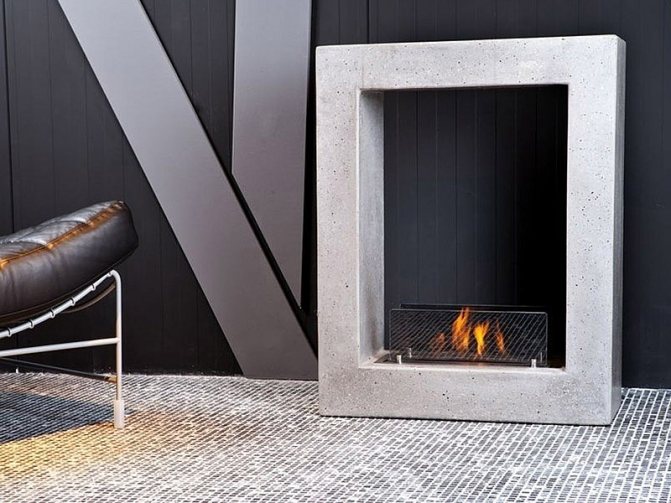 Биокаминът и модерната технология могат лесно да се комбинират с бетонно покритие.
