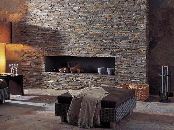 Скъпият вид на скучна камина ще осигури разлика в текстурите. Гладките и груби плочки от един и същи цвят ще се превърнат в фона на предмети на изкуството.