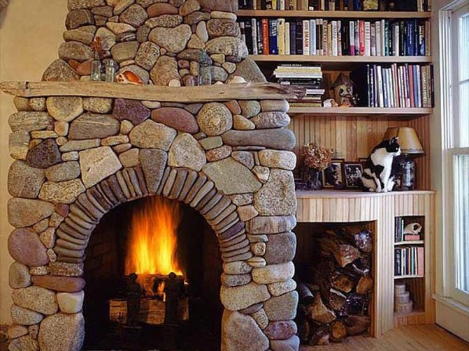 В тази смес се полага камък (река, твърд пясъчник или дори стар счупен бетон). Нежелателно е да се използва счупена тухла, тъй като тя се състои от глина и това е крехък материал за запълване на основата за камина, той може да се напука.
