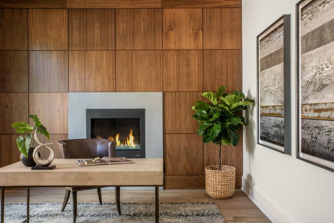 Спокойният фон ще допълни стилно вградената камина, телевизор и компютър, дори ако поставите всичко по-горе на една стена.