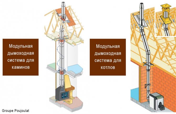 Стоманените и керамичните коминни системи вътре в сградите са поставени в шахти, чието присъствие се препоръчва на етапа на проектиране на къщата