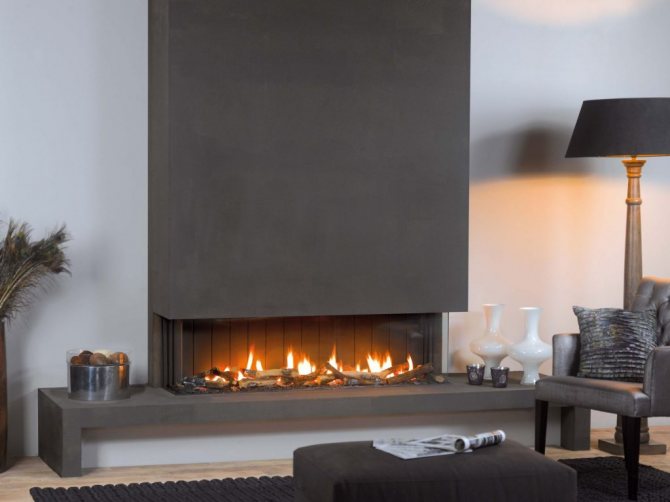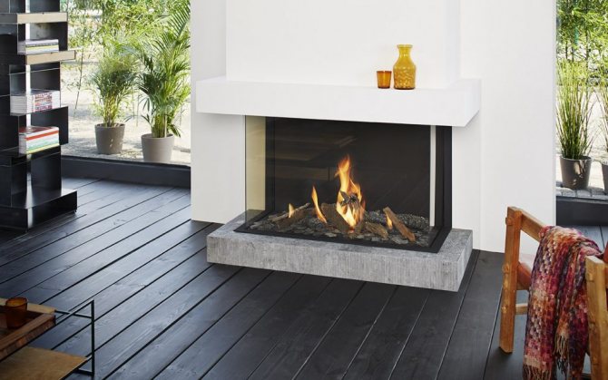 - Подови камини за дома на газ без комин - те приличат на обикновена островна камина.