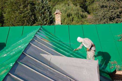 - Боядисването се извършва от билото по склона. Работата може да се извършва по различни начини: с четка, валяк или пистолет за пръскане (този метод е най-икономичен).