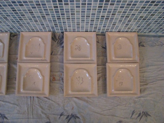 Моделът от гипс е готов - изпълнен е с гъвкав материал. Натискайки глина в структурната повърхност на формата, уверете се, че суровината запълва всички детайли. Следва ред на задницата. Кутията е направена от четири ролки, които се поставят върху детайла. Не забравяйте за дупките за тел. След като полуготовата плочка леко се втвърди, тя се отстранява от основата.