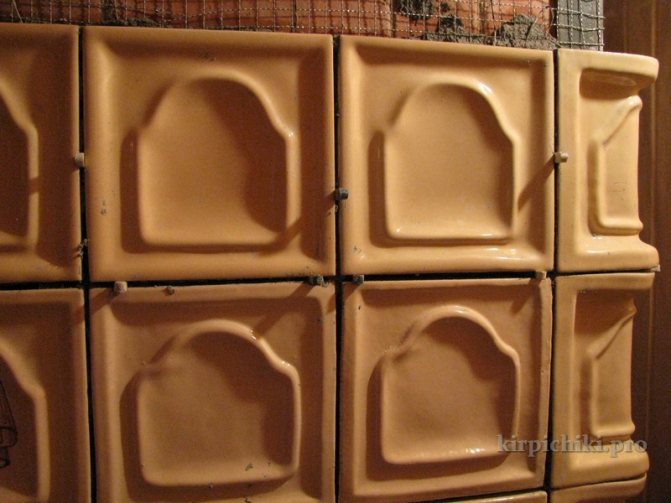 - Дизайнът на самите плочки и техните закрепвания придават уникални свойства: облицовката може да издържа на всякакви температури на повърхността на пещите, дори на колебания до топлинни удари и задържа натрупаната топлина за дълго време.