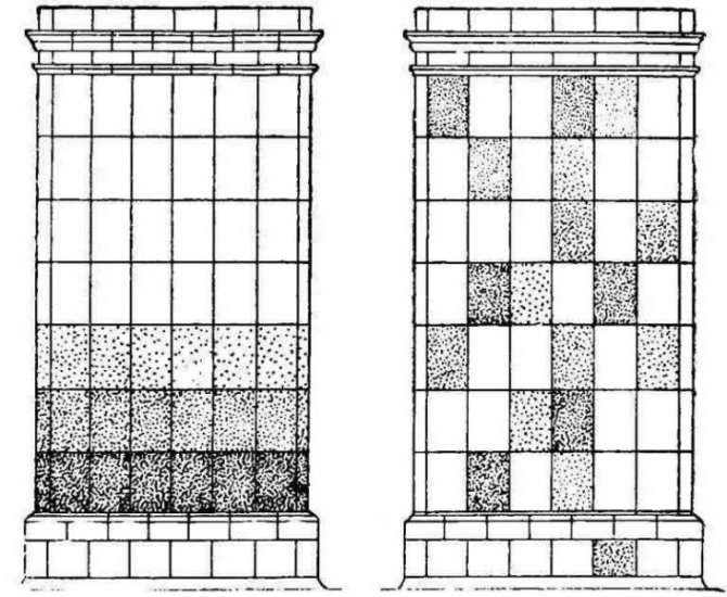 Отворите в лоста са необходими за щифтове или проводници, които са вградени в тухлени фуги - това прави покритието по-трайно и надеждно. Класическата схема на облицовка включва отхвърляне на лепило или други подобни свързващи вещества. По тази причина топлопредаването се увеличава още повече.