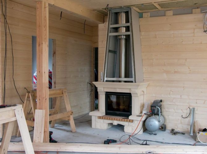Най-ефективният вариант за местоположението на комина е да го поставите в една от вътрешните стени. Тогава топлината на печката ще работи максимално за отопление на помещението, а вертикалният комин ще осигури най-добрата тяга.