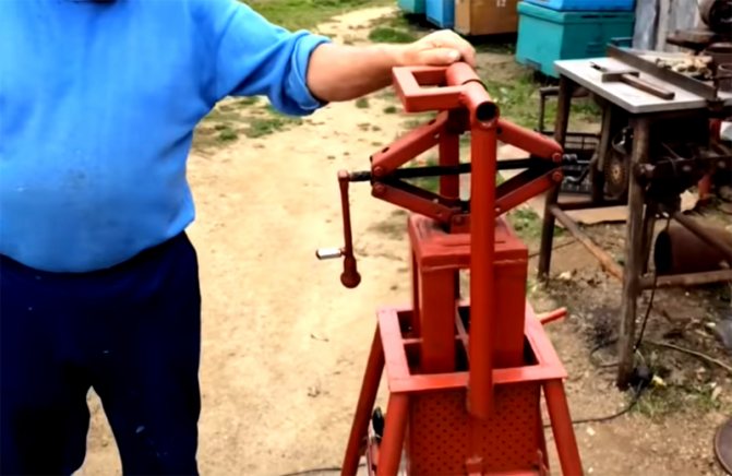 С помощта на малка кофа получената маса се изсипва във всичките 4 отделения за преса, крикът с платформи се спуска надолу. Трябва да се разбере, че отделенията трябва да се пълнят до капацитет. След като пресата изпълни задачата си, брикетите ще бъдат високи само около 5 см.