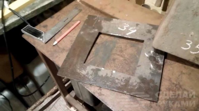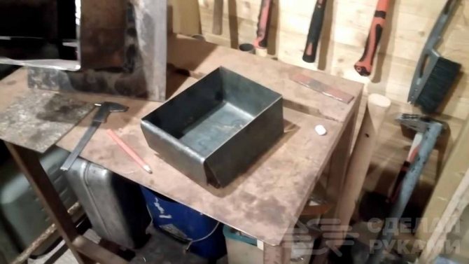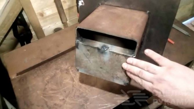 За самата горелка е най-добре да използвате стоманена ламарина с дебелина 2 мм (размери на детайла - 163 * 440 мм). След това централната плоча на горивната камера и страните се изрязват. След това заваряваме всички тези заготовки, за да направим кутия. Това ще е горелката.