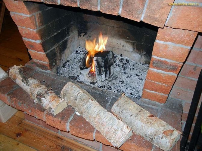 Друг метод се нарича разпалване "на руски", той се извършва на огнището. За това клапанът в пещта е затворен и в същото време вентилацията се поддържа отворена. Дървесината, която трябва да е суха, се поставя на предния ръб на добре оформената пещ, след което се запалва и бавно се премества в центъра си.