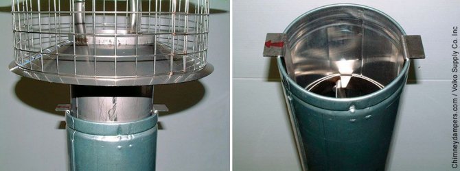 ● При никакви обстоятелства не е разрешена монтираната встрани версия на комина. Дизайнът на искрогасителя е проектиран по такъв начин, че мрежата да не се запушва бързо, а диаметърът на неръждаемите пръти и размерът на мрежата са проектирани така, че искрите да не могат да преминават. Инсталирането на конвенционална мрежа като искрогасител може да доведе до бързо разрастване на сажди, което е по-опасно за запалимите горими покриви.