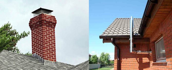 Класификацията на комини на мястото на монтаж включва 2 вида: