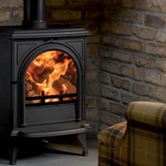 Камините от дърво от желязо имат интересен дизайн. Камината, която прилича на камера, стои на специална опора или стойка. Не е необходимо да се инсталира допълнителна основа за този нагревател, но поради голямото тегло на устройството трябва да се осигури надеждна основа.