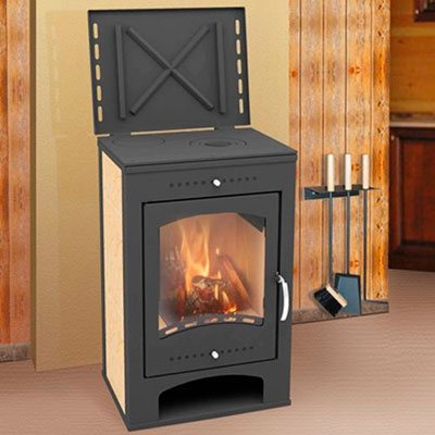 Ако нагревателят е инсталиран в малка стая с целогодишна употреба (например лятна вила или градинска къща), той може да се комбинира с фурна, която има котлони и фурна за готвене.