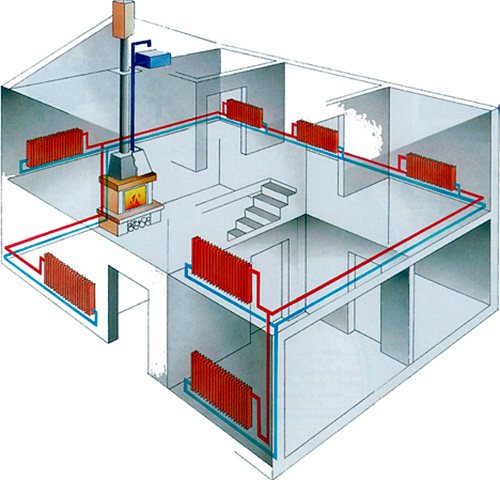 - възможността за свързване на воден кръг ви позволява да отоплявате всички стаи на къщата и да поддържате топлина за дълго време, както и да избягвате ежедневните температурни колебания;