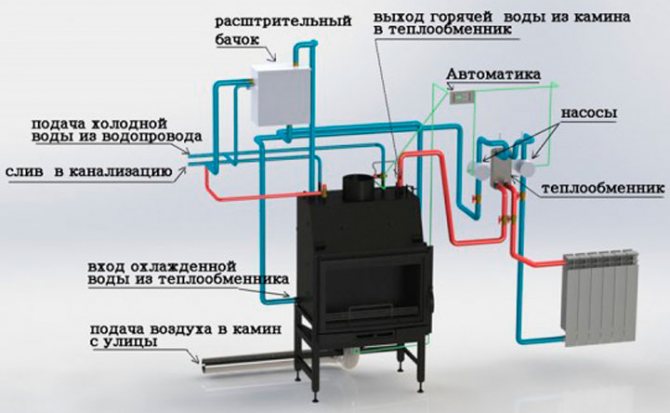 За да не се отвлича вниманието от въпроса за камината, трябва да се отбележи, че камините с топлообменник могат да бъдат включени в отворена и затворена система.