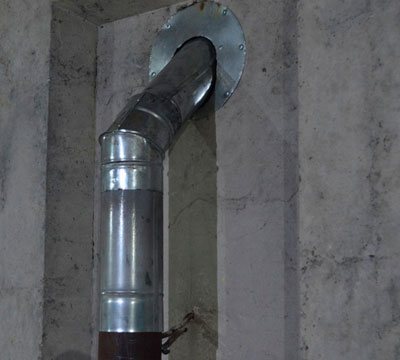 - При първоначалното присъствие на комин с подходящ диаметър на напречното сечение, той може да се използва за свързването му. Преди употреба се извършва цялостно почистване на вътрешността и се проверява херметичността както на цялата конструкция като цяло, така и на всяка отделна фуга и сечение;