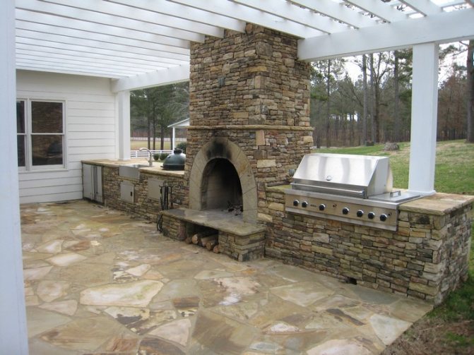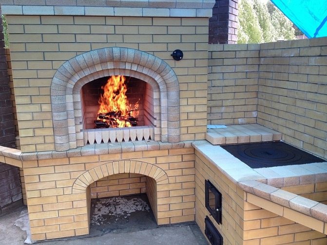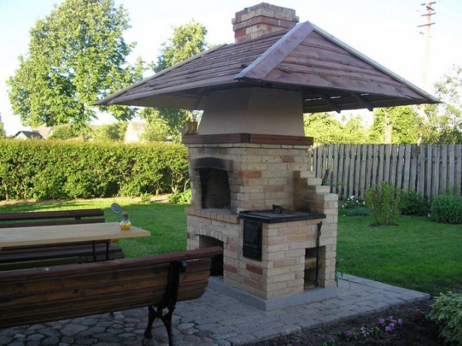 Това е един вид умалена руска печка. Подходящ за всякакви ястия. Има способността да пържи, задушава, пече, задушава и дори пуши. Важно е, че за пушене, ще трябва да оставите няколко въглища в горивната камера, като ги поръсите със сухи дървени стърготини. Добра опция за външна камина за тези, които обичат да готвят на огън.