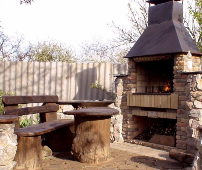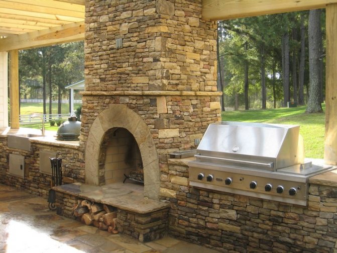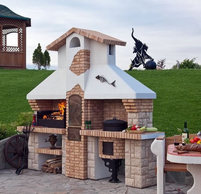 - Вградено барбекю. За нас мангалът е свързан с барбекю или начина на готвене, въпреки че сред много народи от Близкия изток той се счита за универсален инструмент за готвене. Камината на такава камина е направена под формата на купа с вертикални стени. След изгаряне на дървата, останалите въглища се използват за пържене, печене и дори пушене на храна. Камина с барбекю в страната винаги е в търсенето при провеждане на семейни празници.