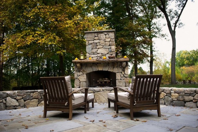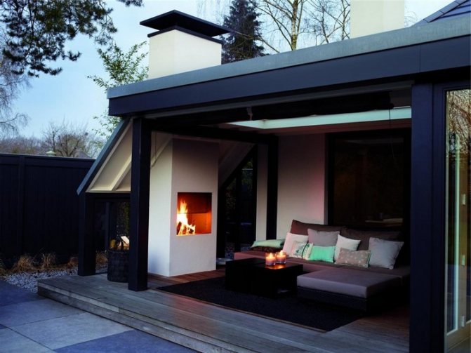 Най-често срещаните места за инсталиране на камина са тераса, беседка, открита площ на спокойно място.