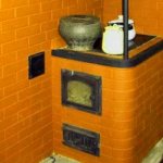 - Инсталиран е котлон. Той е монтиран на 13-ия ред тухли. Отгоре може да се монтира резервоар, който използва топлината на излизащия дим за загряване на водата.