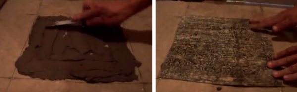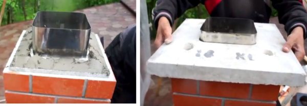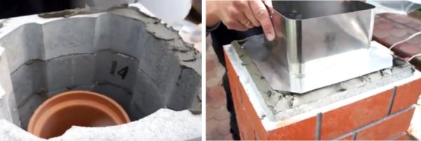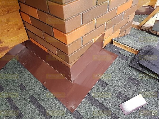 На мястото на инсталиране на комина се нанася слой разтвор и се полага покривен материал по размер