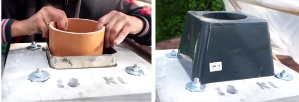 - За да инсталирате тръба от блокове, подредете лека основа, тъй като масата на бъдещата конструкция позволява тя да бъде поставена върху по-малко масивна плоча, отколкото с тухлен или бетонен комин.За да направите това, можете просто да попълните плоча с дебелина 20-25 см, която ще има размери, по-големи от основата на комина, приблизително два пъти. Необходимо е да се осигури изпъкналостта на плочата от всяка страна на основата с поне 15 см. При комини от 10 метра или повече, основите се задълбочават с 50 см или повече, но плочата не е необходимо да се излива.