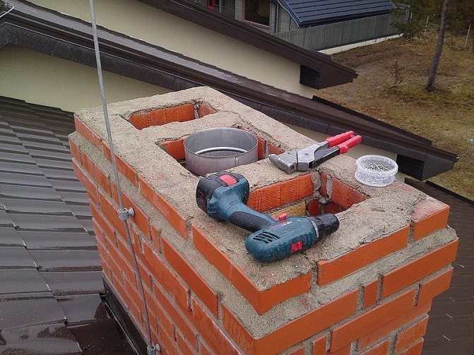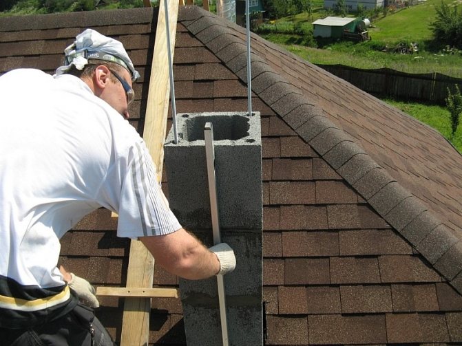 Последната част се нарича инсталиране на елементи, разположени над наклона на покрива. Имат имитация на естествени керамични тухли. Височината на комина над покрива зависи от разстоянието до билото, параметрите се регулират от строителните норми и разпоредби.
