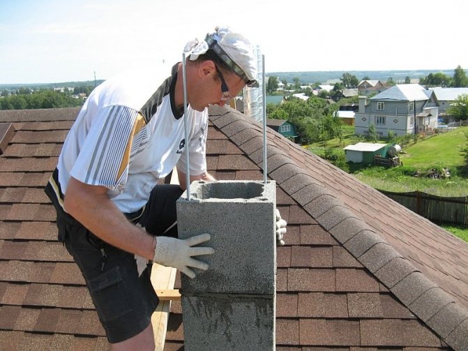 Тогава се използват само прави керамични тръби и цели блокове. Работата трябва да продължи, докато коминът излезе на покрива. Ако планирате да инсталирате порта, първо трябва да направите малка дупка в блока.